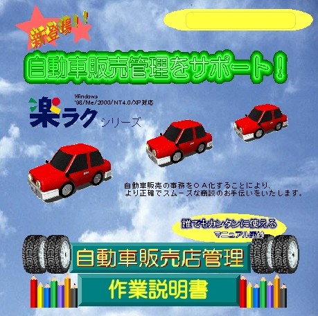 ソフト名 :自動車販売管理店管理 (作業説明書 付属) 環 境: エクセル2000以上で起動 価 格:¥10,500(税込)